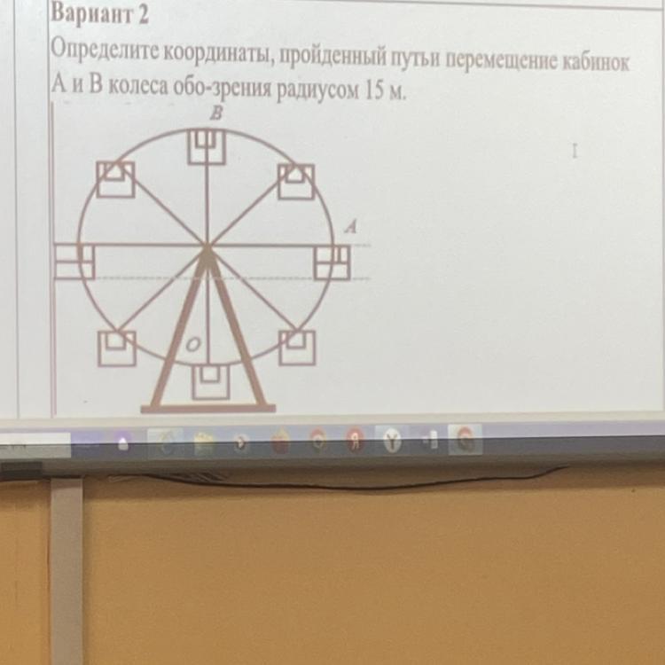 Определите координаты, пройденный путь перемещение кабинск А и В колеса обо-зрения радиусом 15 м