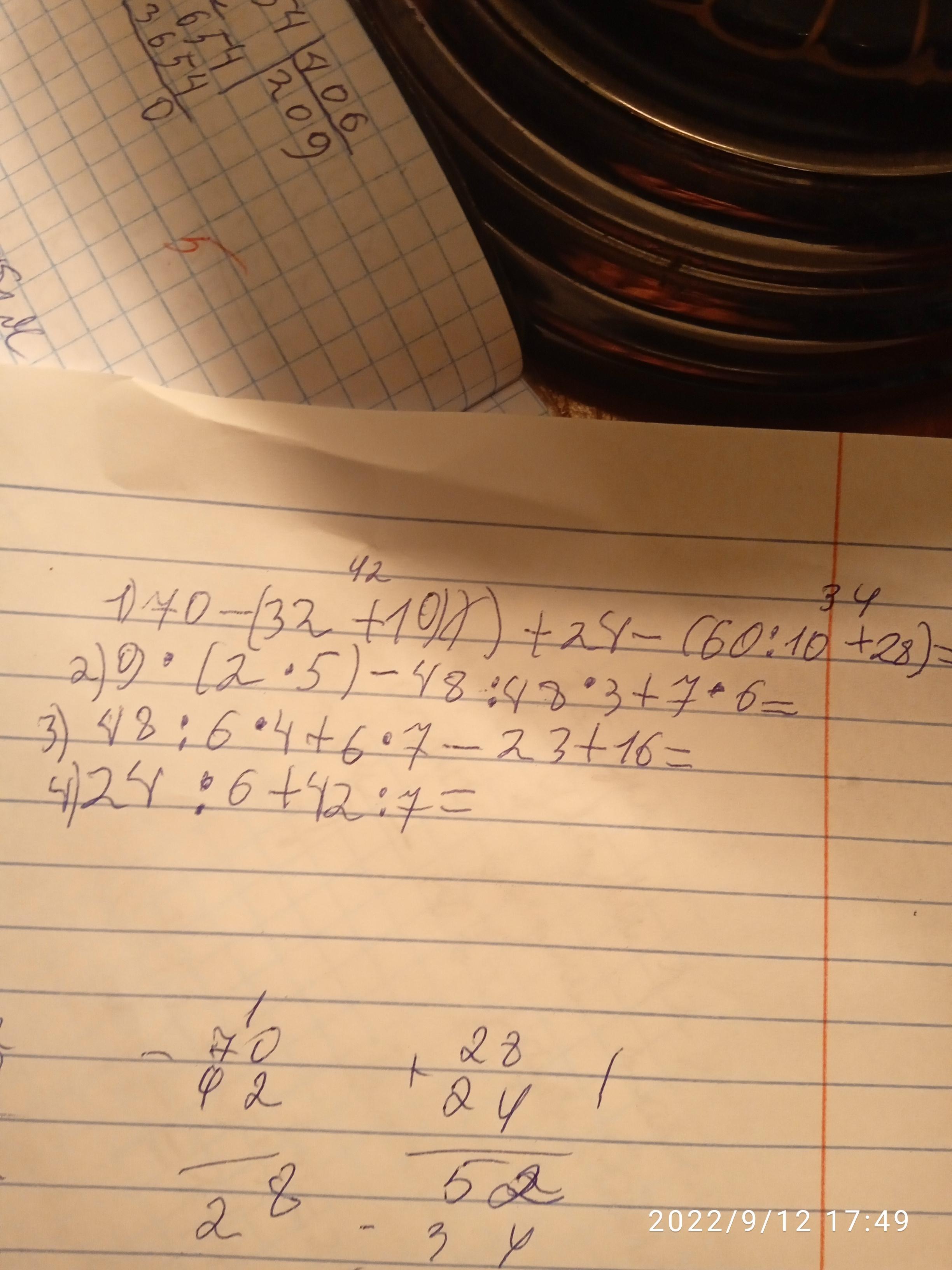 4)24/6+42/7=4+6=10