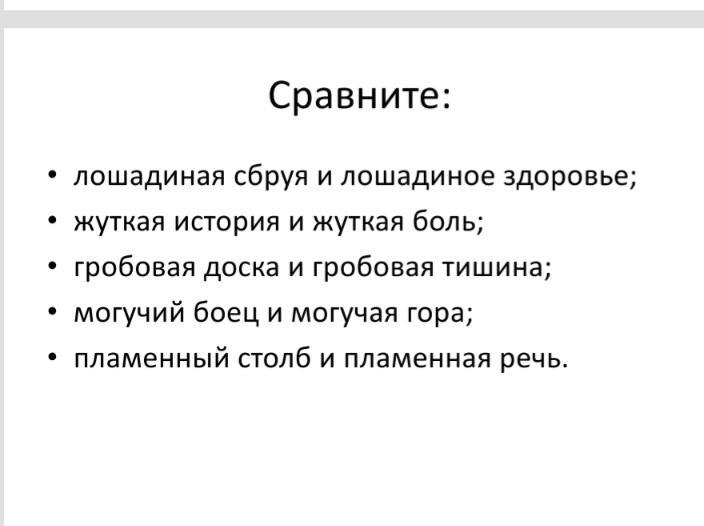на первом изображении первая часть всех пунктов в прямом, а вторая в переносном значении