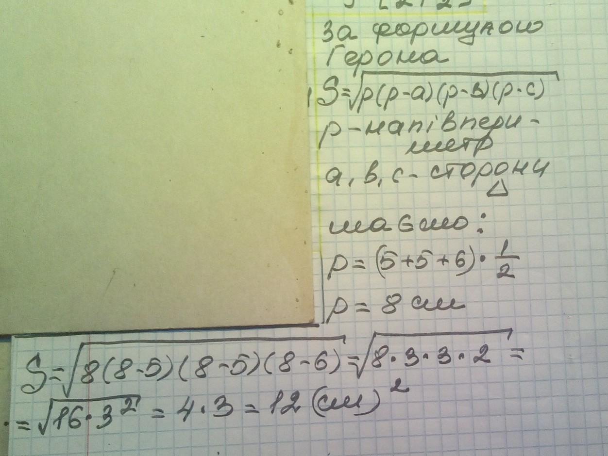 Знайдіть площу трикутника зі сторонами 5см 5см 6 см