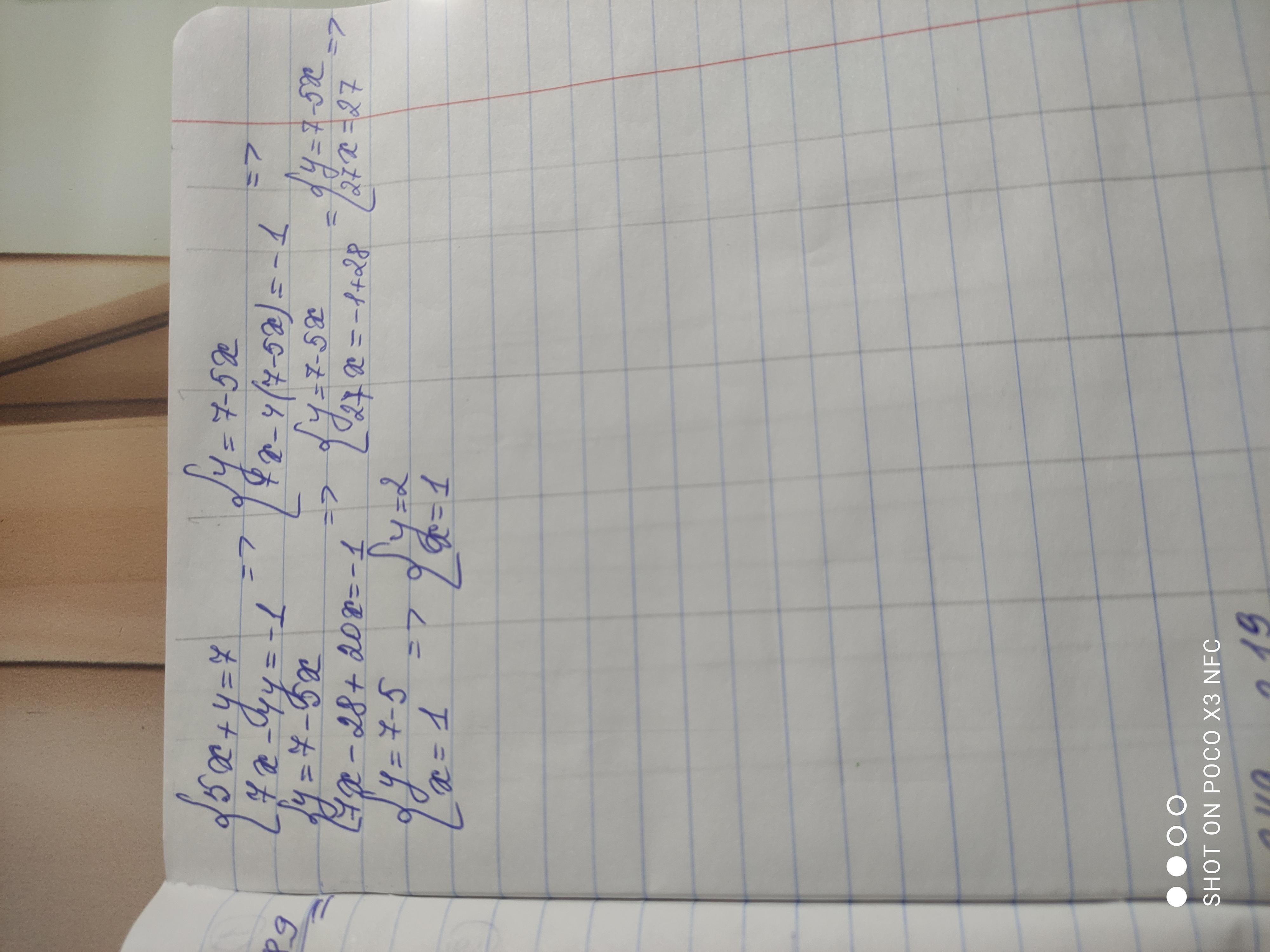 7х - 4у = -1