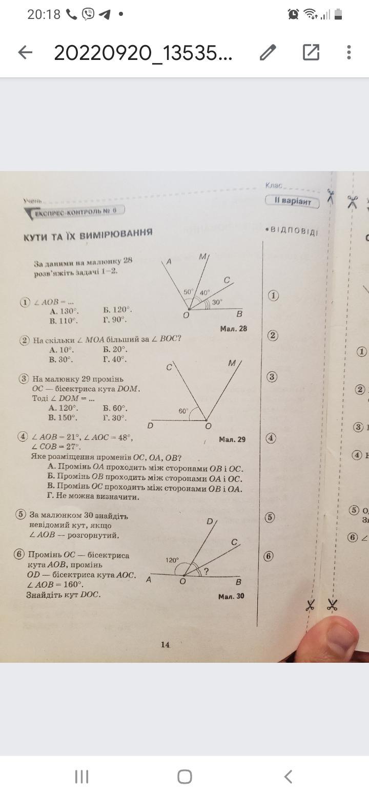 4 . В - дь : Б. Промінь ОВ проходить між сторонами ОА і ОС .
