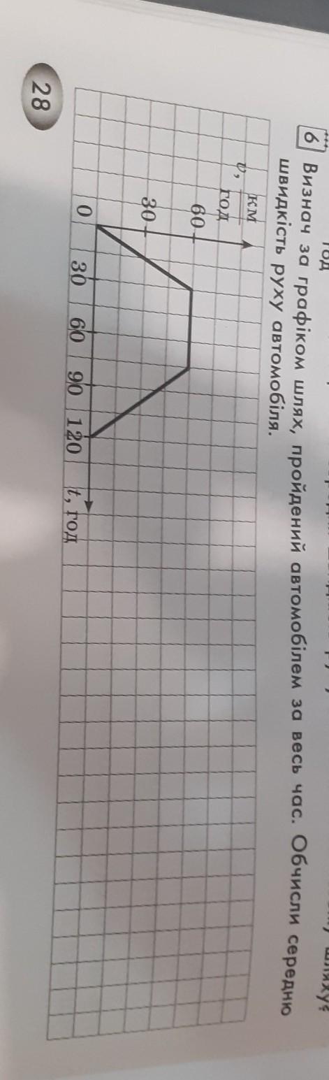 6. Визнач за графіком шлях, пройдений автомобілем за весь час. Обчисли середню швидкість руху автомобіля.