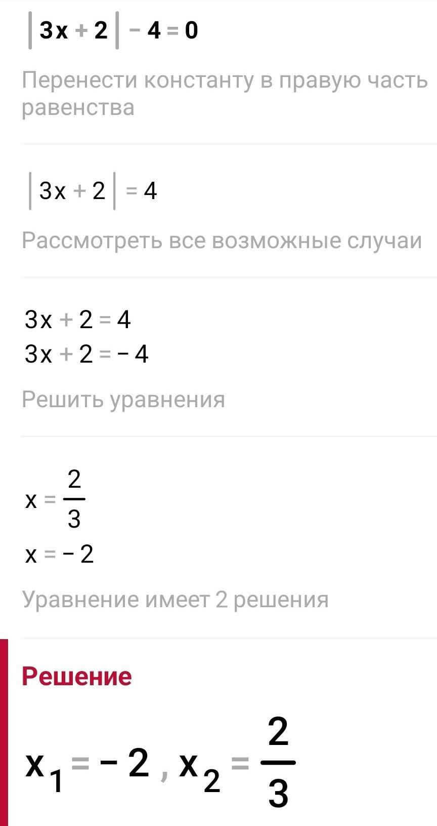 | 3х+2|-4 =0 помогите пожалуйста решить уточнение.