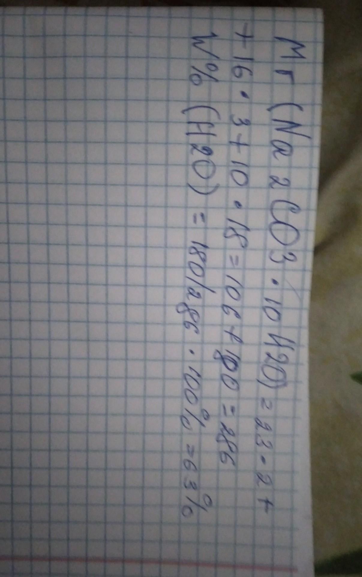 Обчисліть масові частки натрій карбонату та води в кристалічної солі Na2CO3 · 10Н2О.