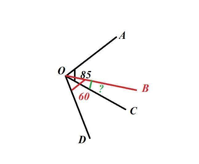 ∠ВОС= ∠AOD-(∠AOC+∠BOD)=110°-(85°+60°)=-35° математично значення від'ємне, але за значенням кут 35°. Дивись малюнок.