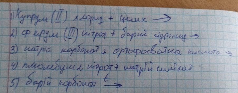 Допоможіть перетворити в рівняння + закінчити рівняння реакцій: 1)купрум(||)хлорид+цинк=;