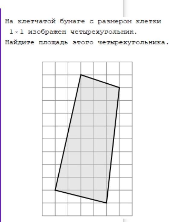 На клетчатой бумаге с размером клетки 1x 1 изображен четырехугольник. Найдите площадь этого четырехугольника.