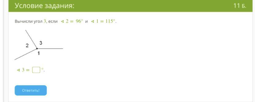 Вычисли угол 3, если ∢2=96° и ∢1=115°.