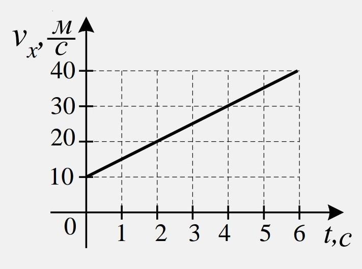 vₓ=v₀±at ⇒ v(t)=10+5t