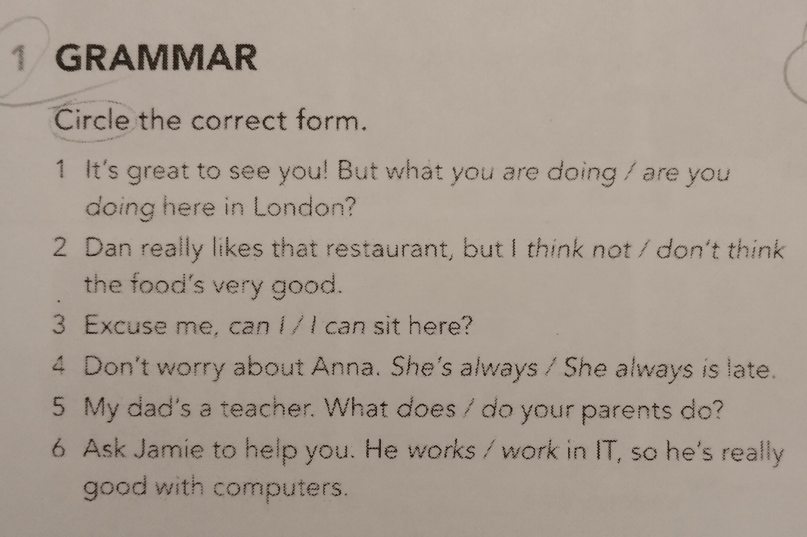 Circle the correct form