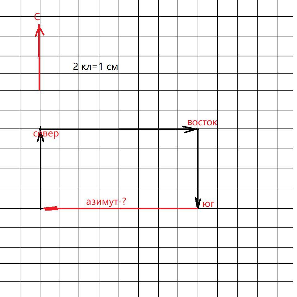 Ви вийшли в маршрут на північ, пройшли 2 км і повернули на схід. Після 4 км дороги повернули на південь, пройшли ще 2 км і зупинилися на