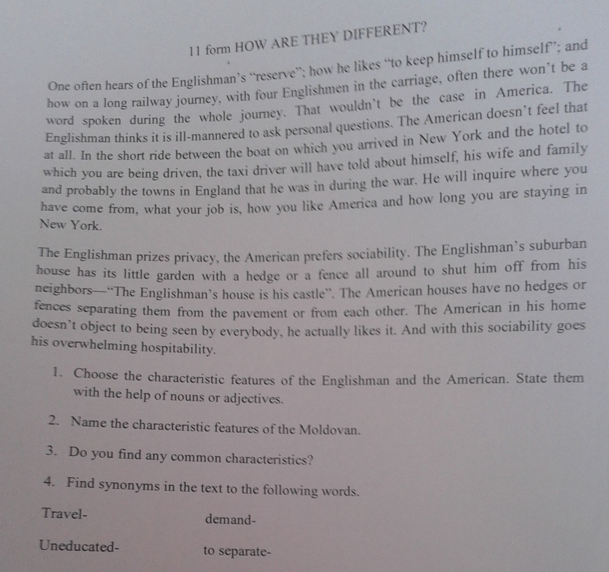 1. Americans are more obliged to ask the questions regarding the personality of a man, whilst Englishman believe that this is the determinant of a bad manner.