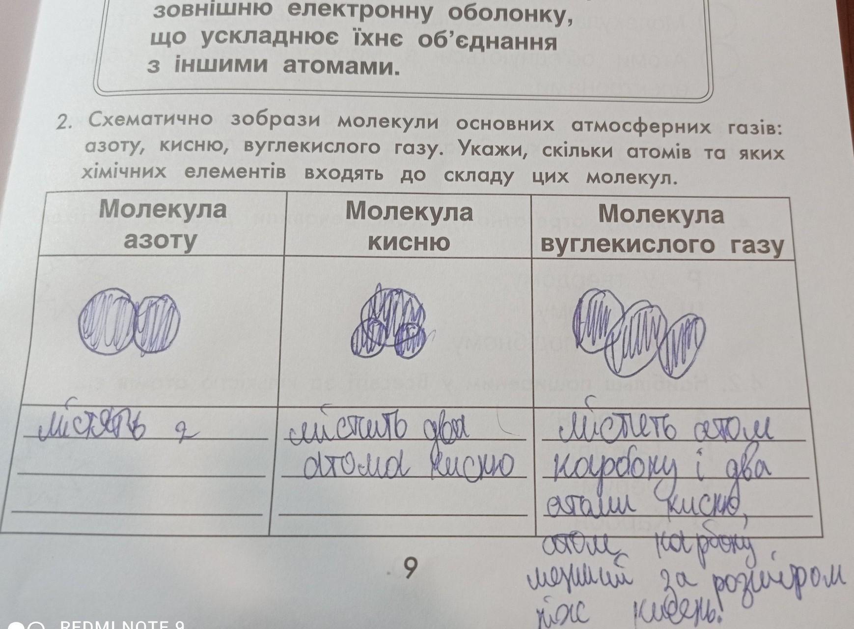 азоту, кисню, вуглекислого газу. Укажи, скільки атомів та яких