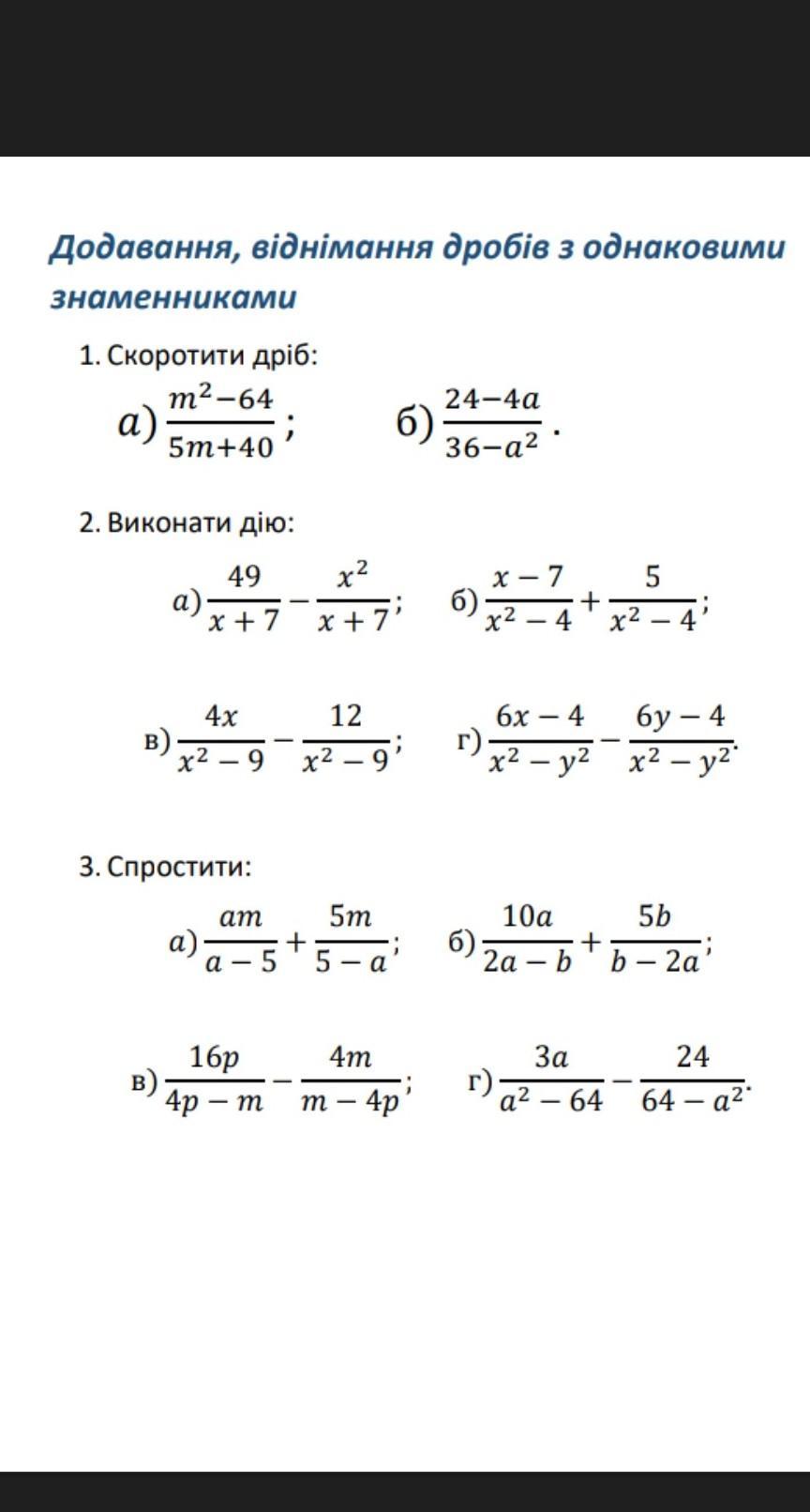 я бы могла вам на первый номер ответить (я только его знаю) но так будет я считаю что нечестно. Могу тогда я вам посоветовать скачать mathway, из всех решалок математики он лучший, вы можете либо сфоткать какой то пример, либо загрузить фотку и выделить тот пример который вам нужен, а дальше выберите что нужно сделать (упростить, решить и т д), чтобы посмотреть как он это решил (по шагам) нужно зарегестрироватся