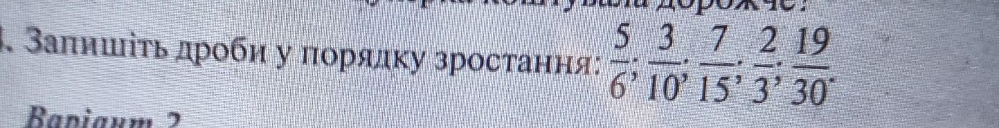 впорядку зростання: 9/30, 14/30, 19/30, 20/30, 25/30,