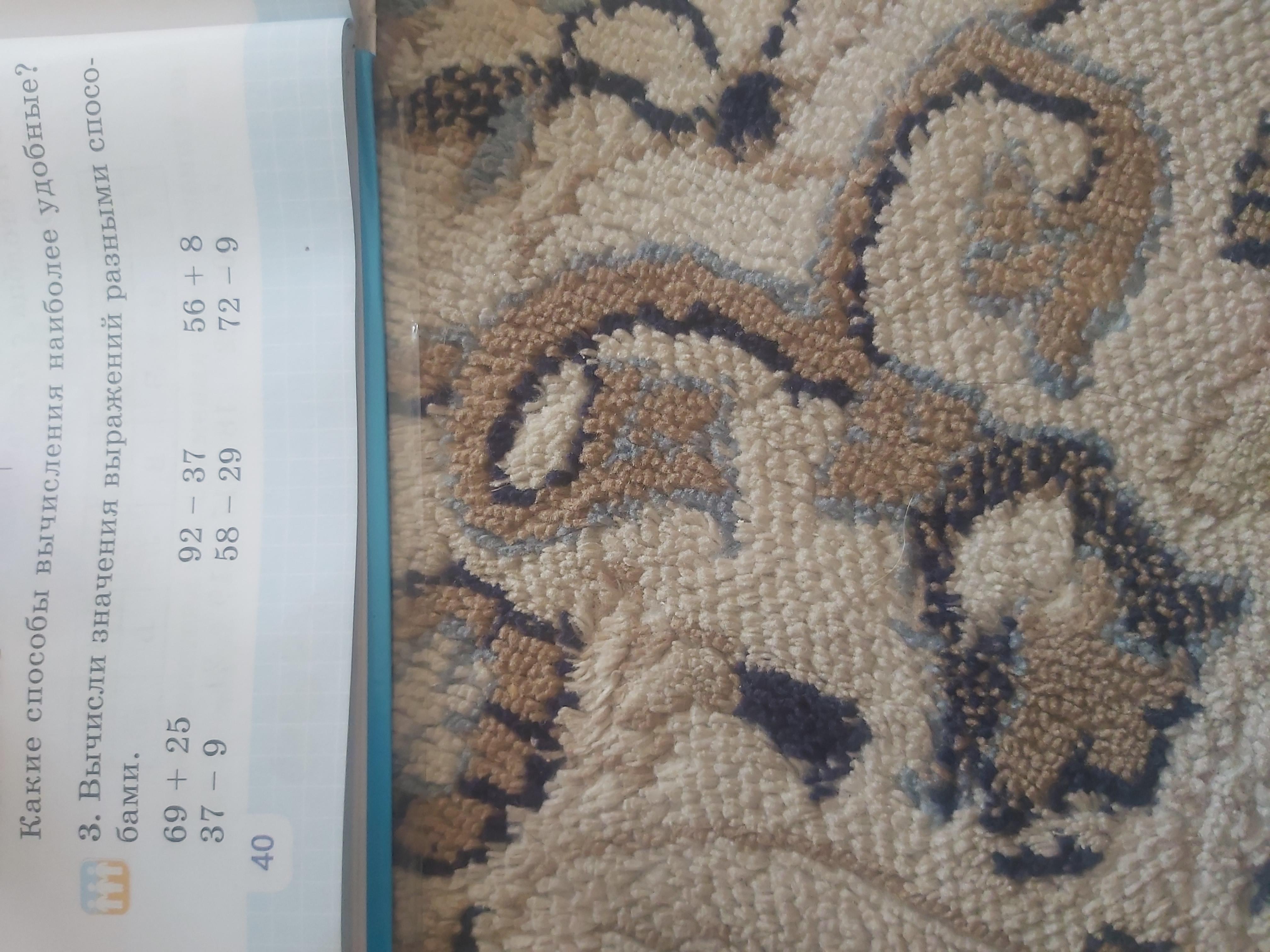 3. Вычисли значения выражений разными спосо Н Ka 69 + 25 37-9 92 - 37 58 - 29 56 +8 72-9 able? помогите