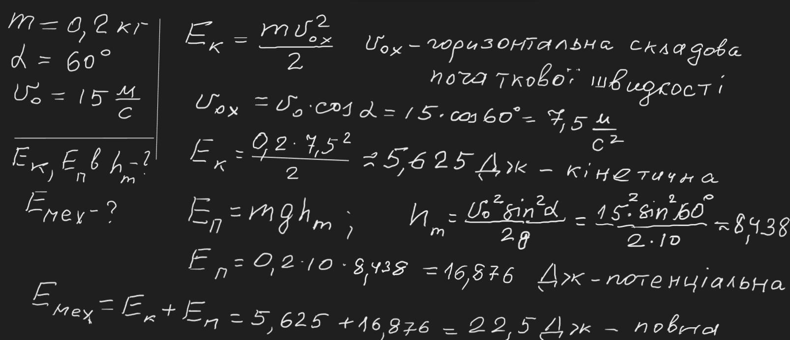 Камінь масою 0,2 кг кинули під кутом 60° до горизонту зі швидкістю