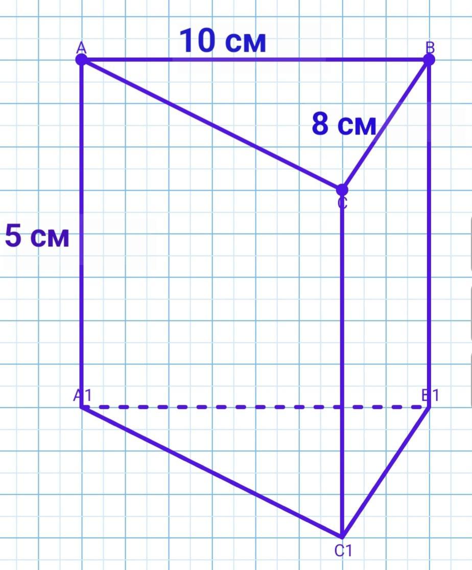 Основою прямої призми є прямокутний трикутник. один із катетів якого дорівнює 8 см, а гіпотенуза - 10 см. Бічне ребро призми дорівнює 5 см. Чому дорінює площа бічної поверхні призми?
