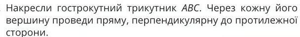 Накресли гострокутний трикутник ABC. Через кожну його вершину проведи пряму, перпендикулярну до протилежної CTOPOHИ.