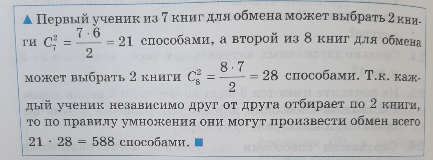 2.15. у одного ученика имеются 7 книг, а у второго - 8 книг. Сколькими способами они могут произвести обмен кни- гами два на два?