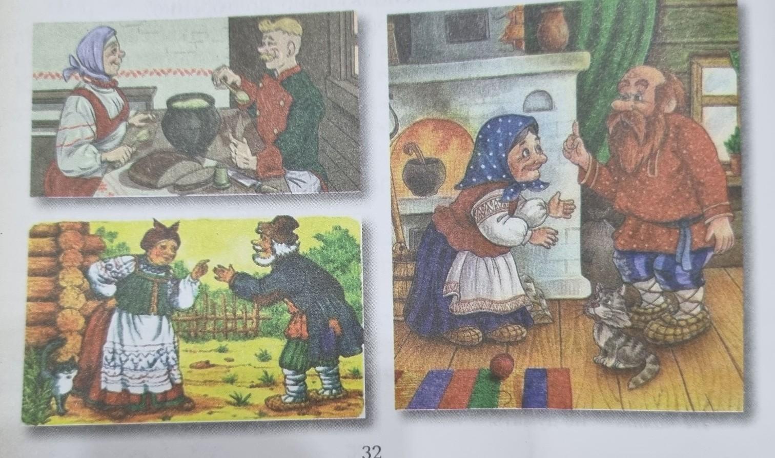 рассмотрите иллюстрации и создайте по ним свой сюжет бытовой сказки