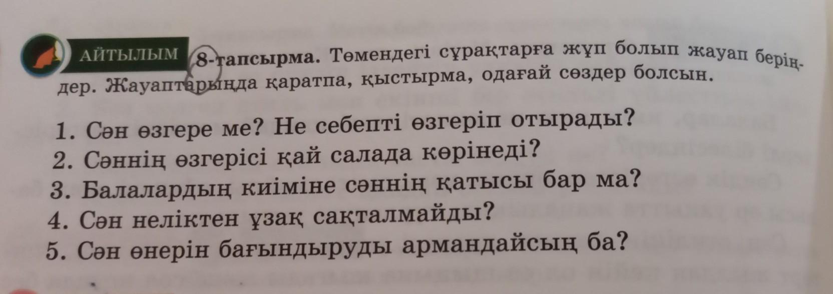4. Себебі заман ағымына қарай сән де өзгереді. Шіркін, сән ұзақ сақталса ғой. (одағай сөз)