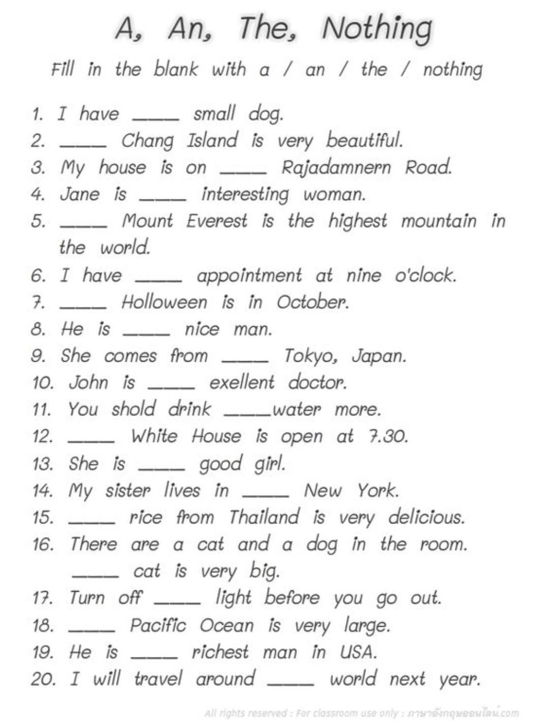 Fill in the blank with a / an / the nothing