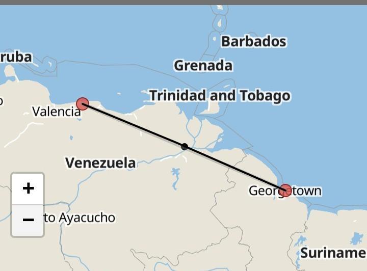 найдите расстояние на карте города Каракас до Джорджтаун