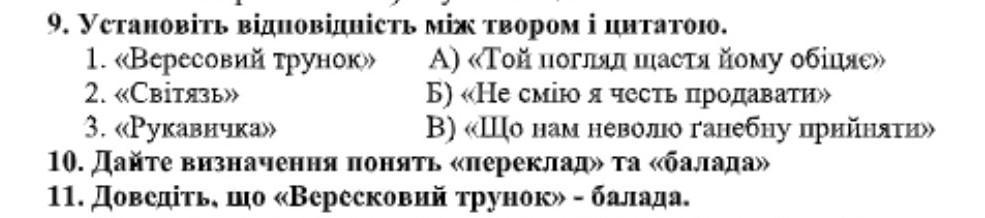 хто допоможе?Будь ласка! Потрібна допомога з дев'ятим і одинадцятим питанням десятий знабо, но якщо хочете можете написати.Дякую за допомогу!Даю 25 балів! Потрібно прямо зараз.