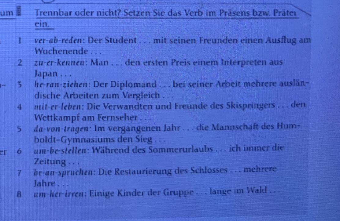 Trennbar oder nicht? Setzen Sie das Verb im Präsens bzw. Präter ein.