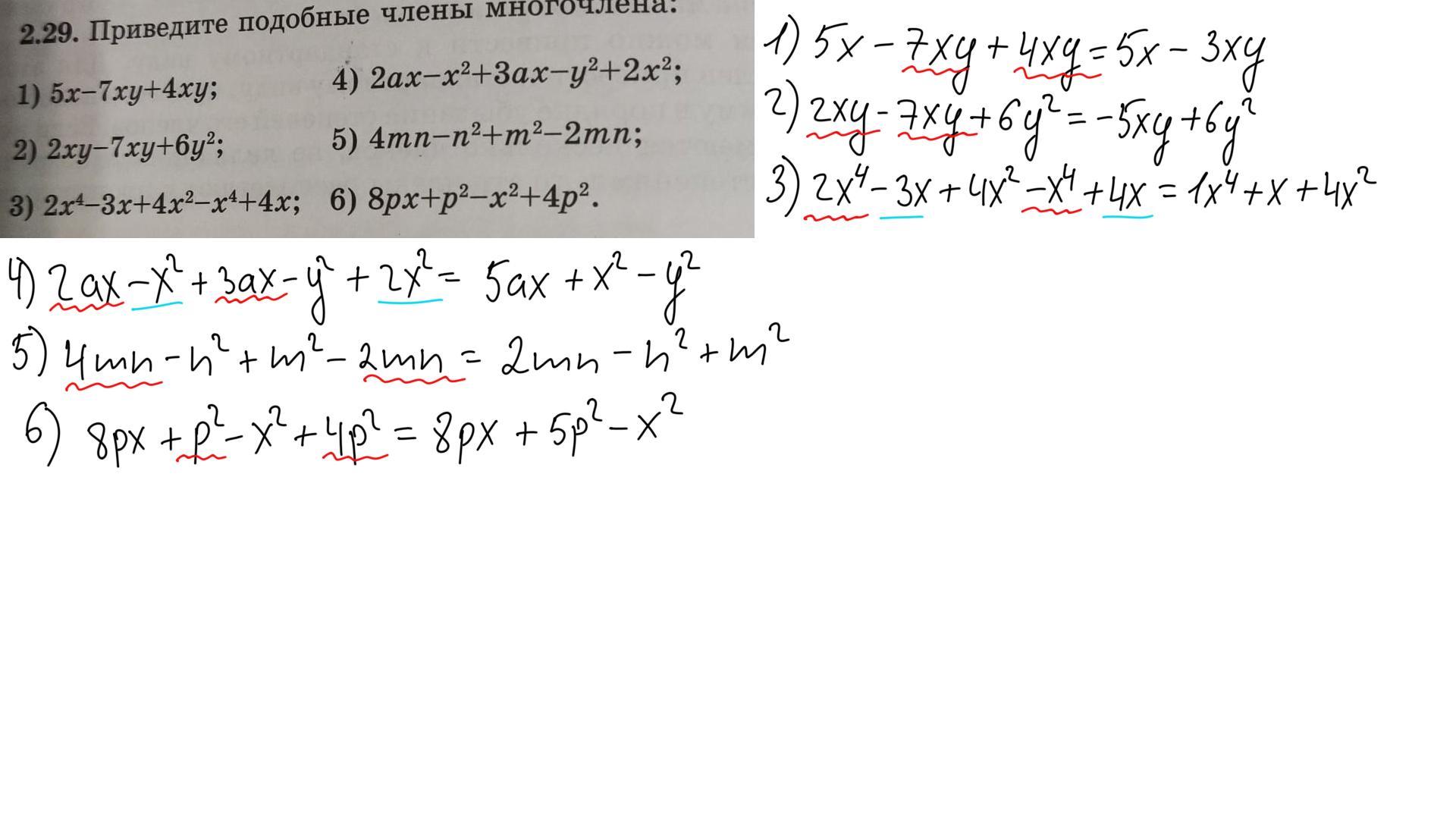 Всё на фото. Красными и синими линиями показаны подобные члены.