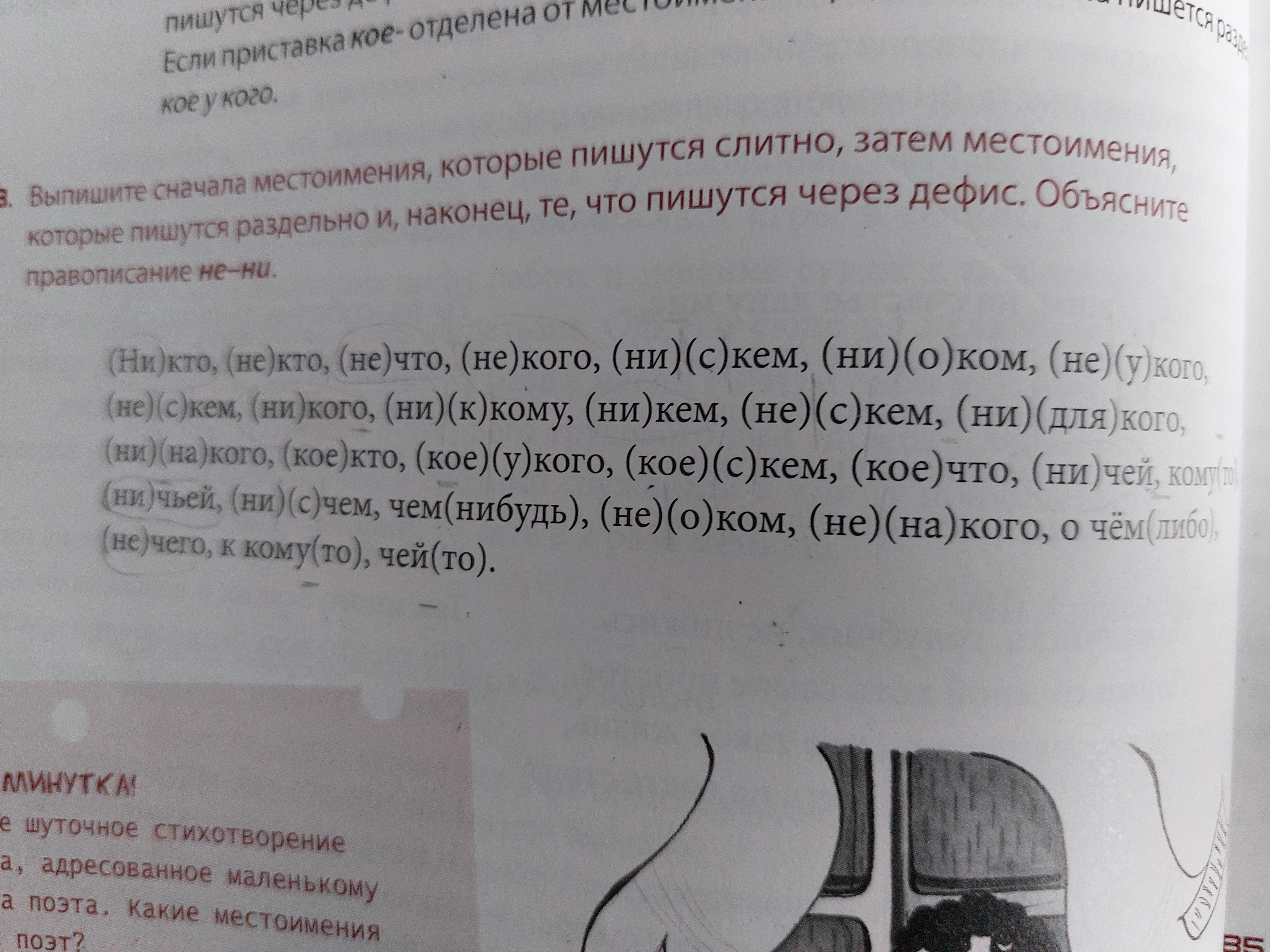 через дефис: кое-кто, кое-что, кому-то, к кому-то, чей-то.