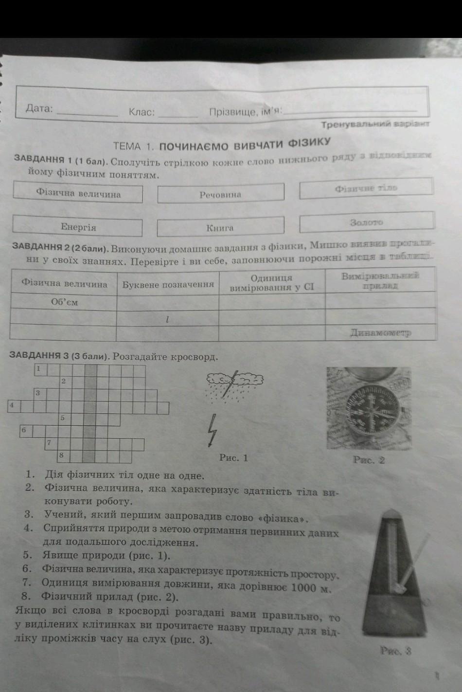ФІЗИКА 7 КЛАС ДОПОМОЖІТЬ ТЕРМІНОВО !!!!!