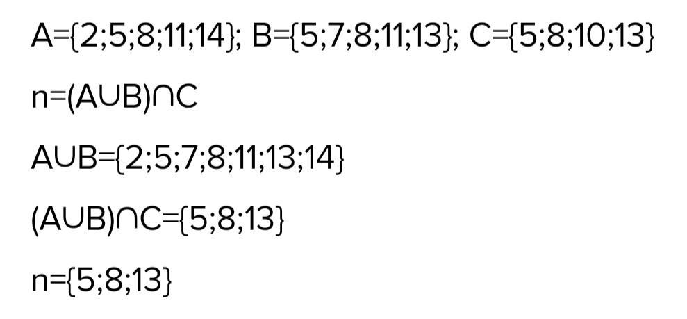 3. Для множеств А={2; 5; 8; 11; 14}, B={5; 7; 8; 11; 13 и С={5; 8; 10; 13}