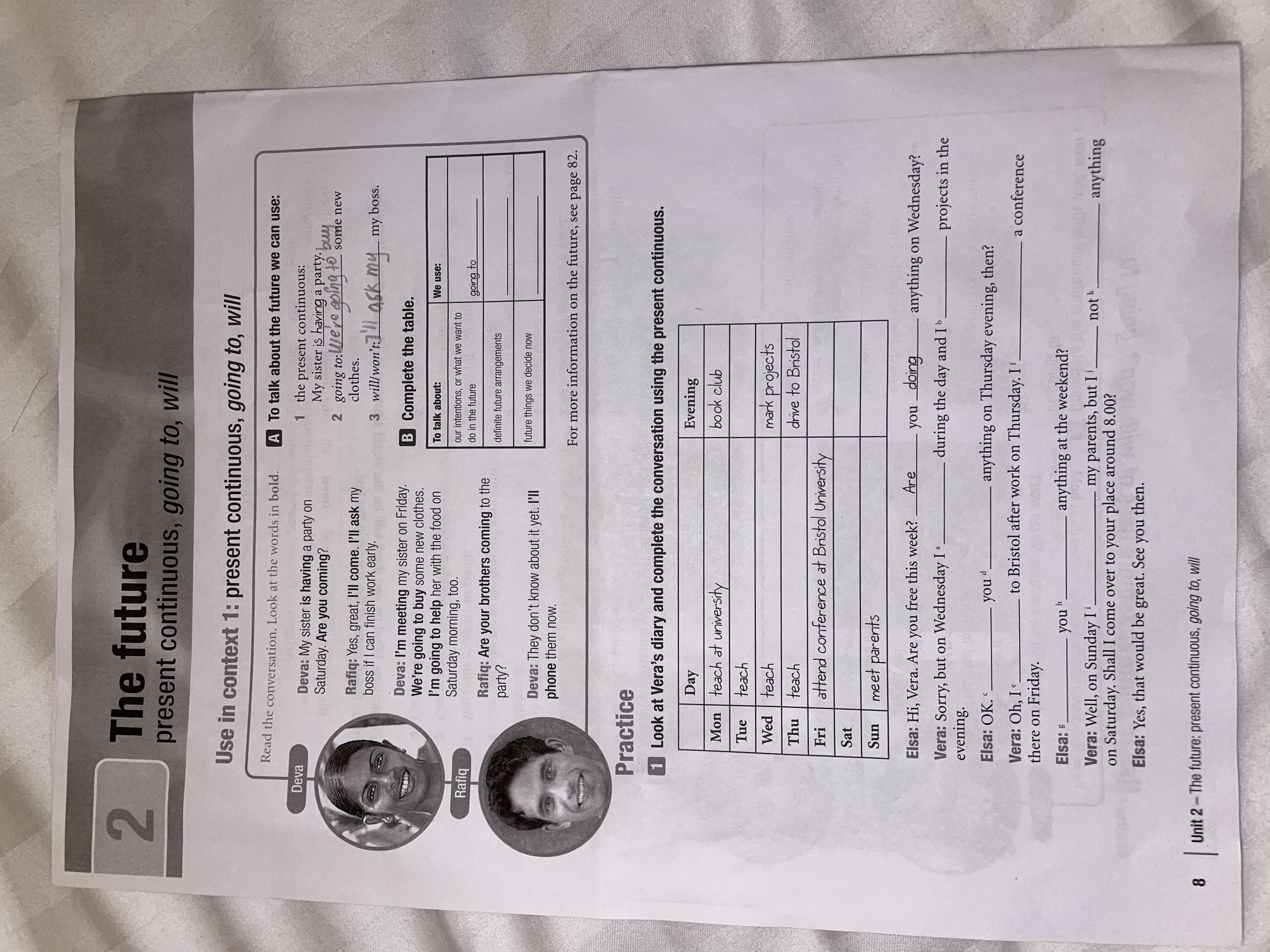 1 Look at Vera's diary and complete the conversation using the present continuous.