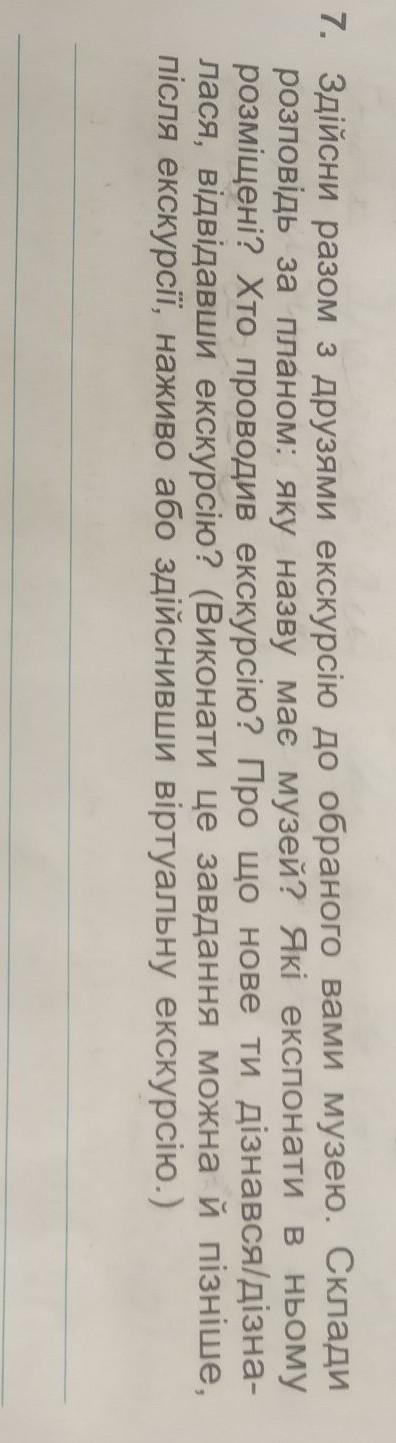 як я зрозуміла треба знайти в інтернеті якийсь музей та розповісти про нього