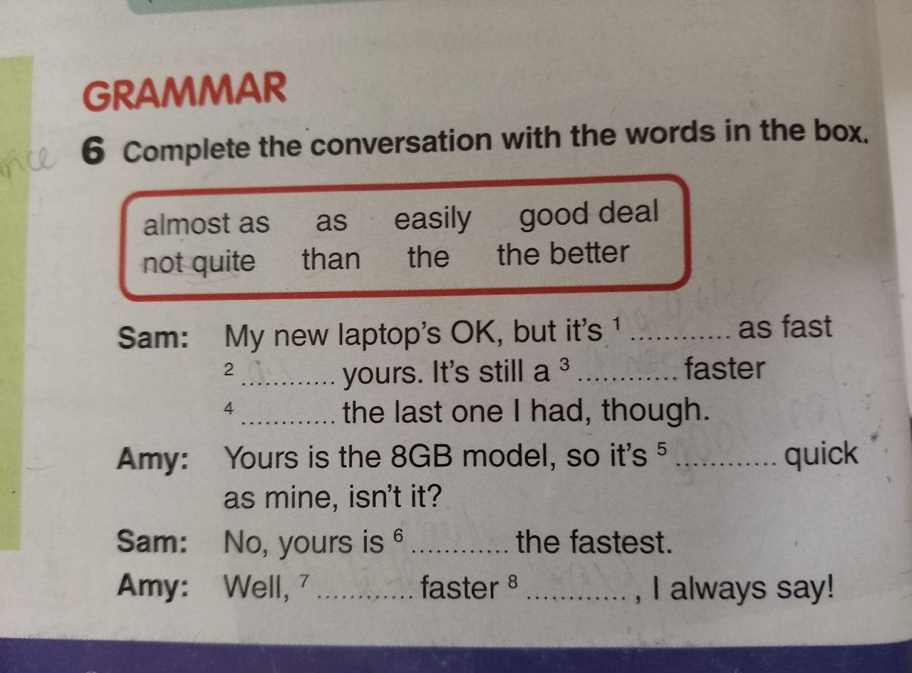 1 not quite 2 as 3 good deal 4 than 5 almost as 6 easily 7 the 8 the better