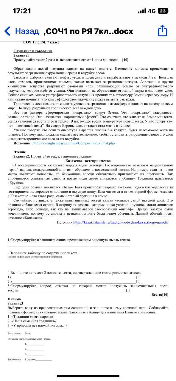 Пример: 1) доказательство гостеприимство Казахстана, 1) о гостепреимст казахского народа ходит легенды, гостепреимст казахского народа называют национальной чертой города.