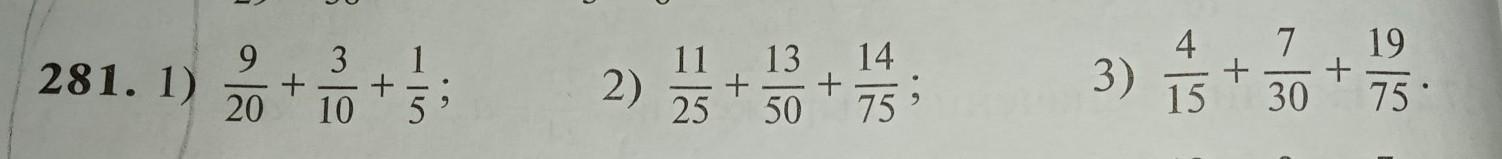 281. 1) 9 20 + 3 10 + 1 5 9 2) 14 11 13 + 25 75; 50 + 3) 4 15 7 + 30 + 19 75°