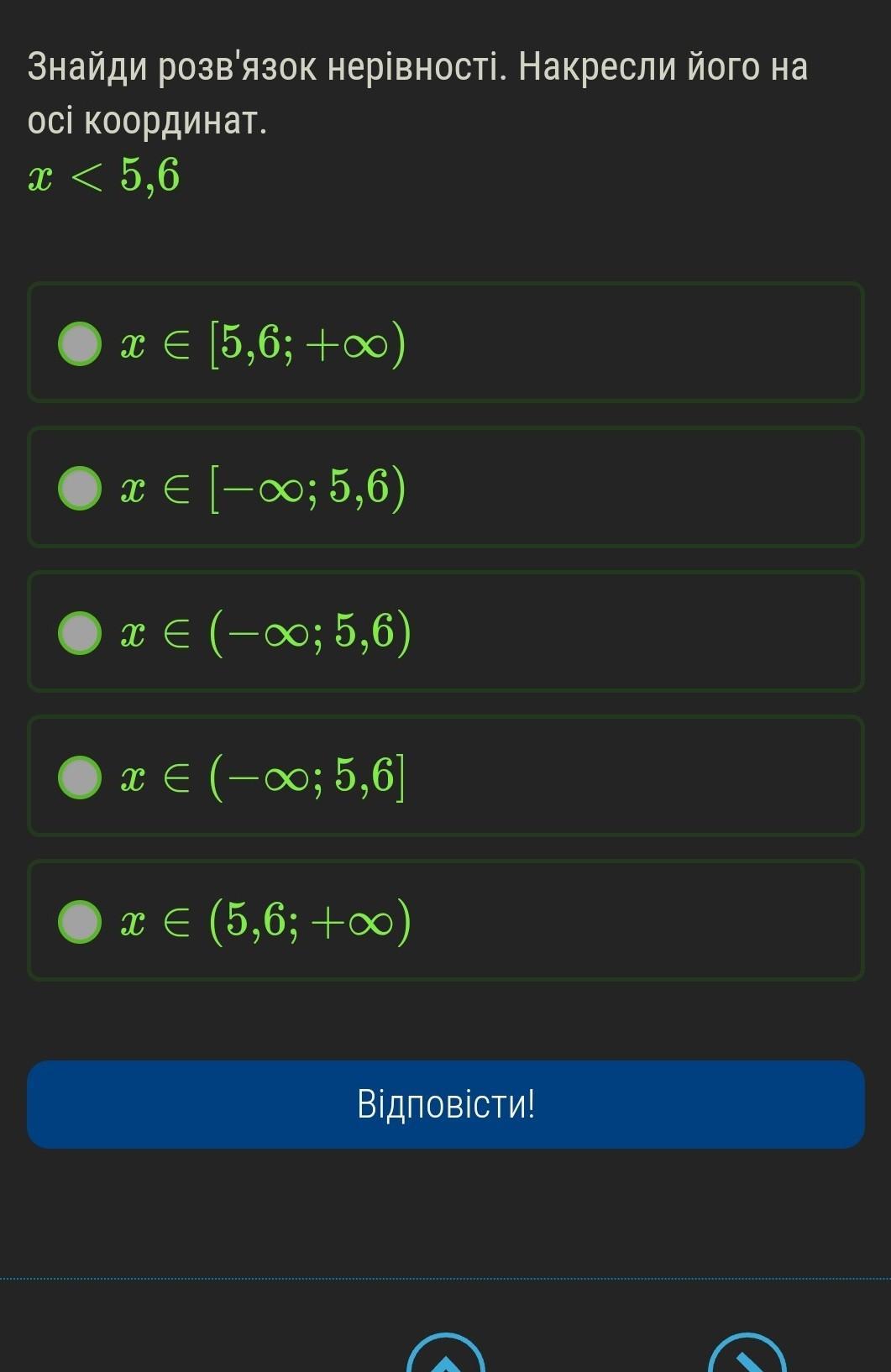 Ответ: x∈(-∞; 5,6).