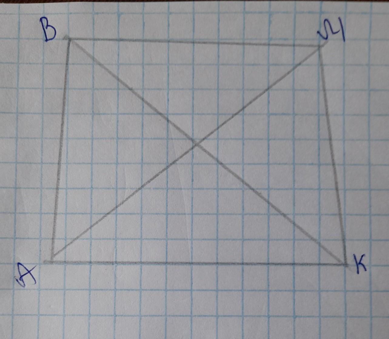 накресліть опуклий чотирикутник ABMK та проведіть його діагоналі