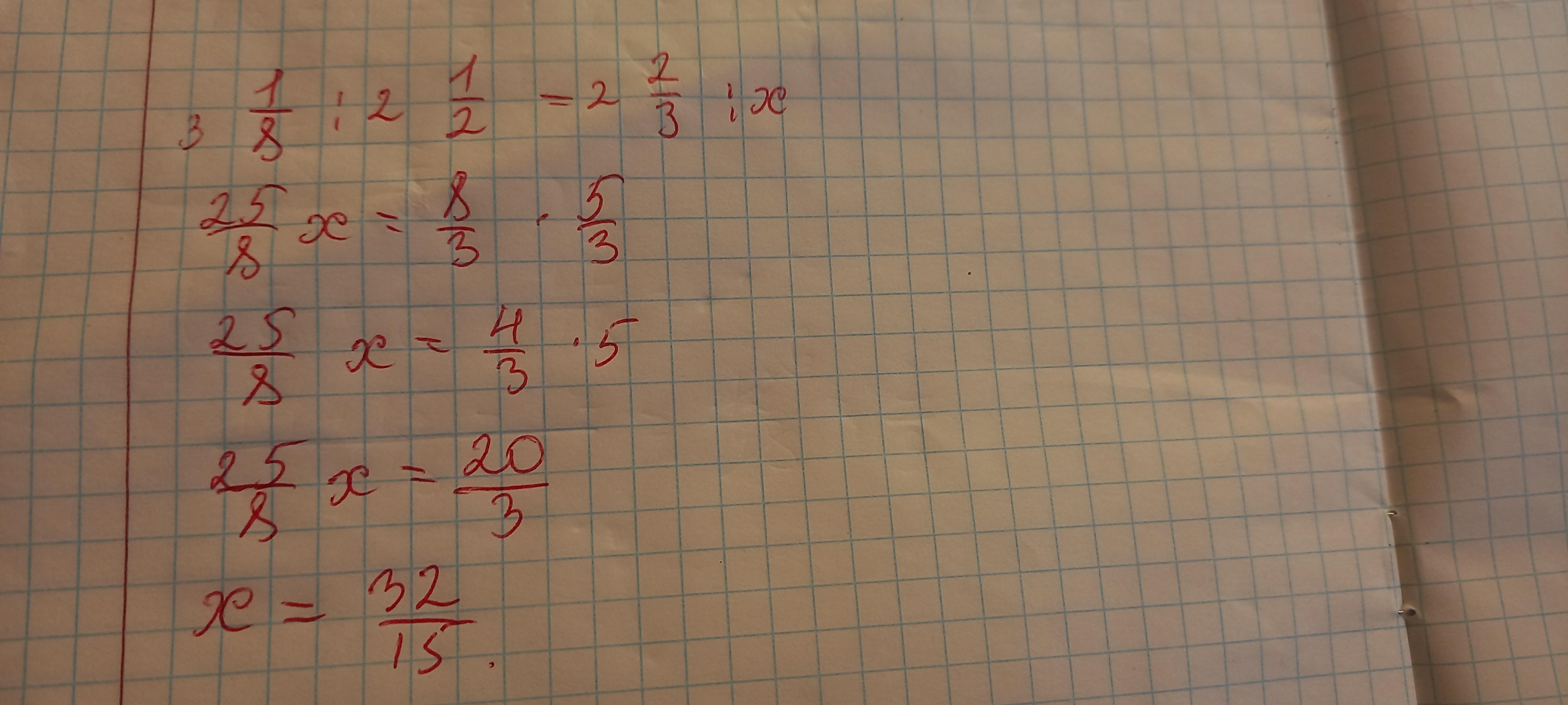 3 1/8 : 2 1/2 = 2 2/3 : Х