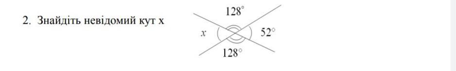 X= 52°. Тому що це вертикальні кути, а вертикальні кути рівні.
