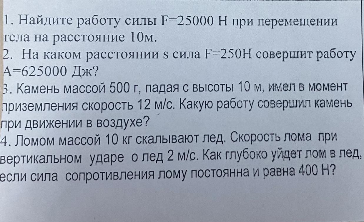 А = Fs => s = A/F = 625000/250 = 2500 м = 2,5 км