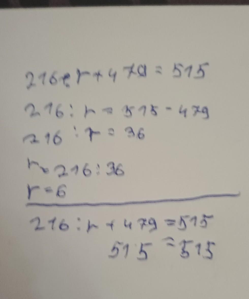 216 : 6 + 479 = 515;