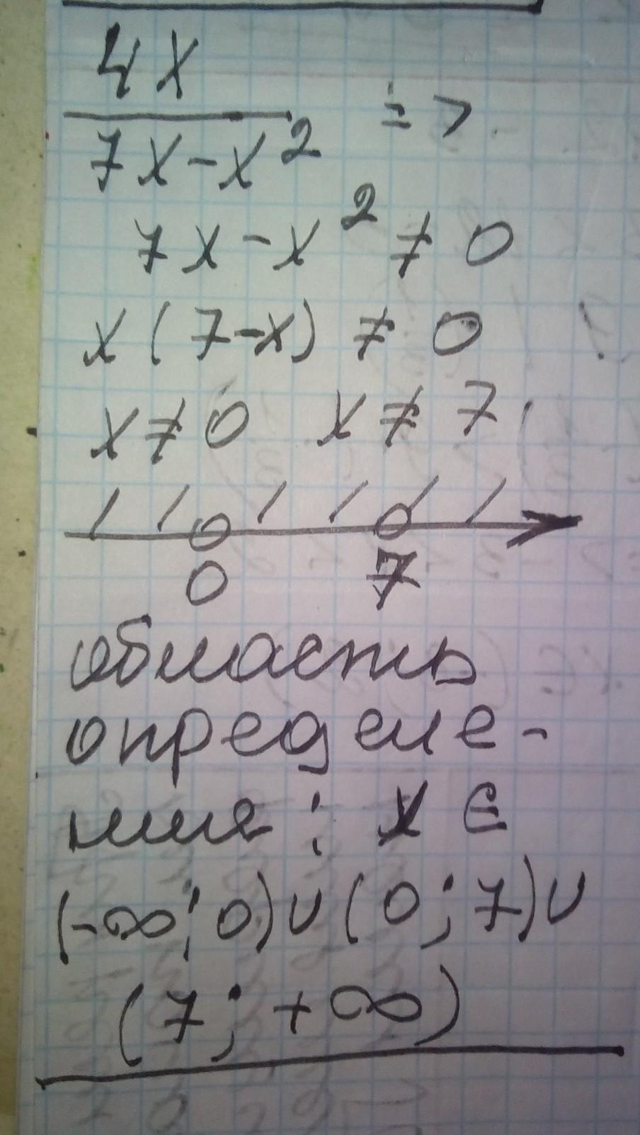 х Є (-∞; 0) U (0; 7) U (7; +∞)