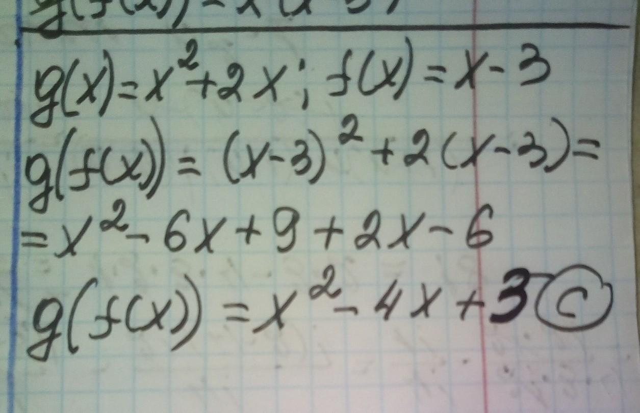 g(f(x)). a) x² + 4x - 3; - b) x² - 4x - 3; c) x² - 4x + 3.