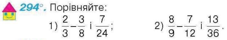 294°. Порiвняйте: 1) 2/3 - 3/8 і 7/24 ; 2) 8/9 - 7/12 і 13/36