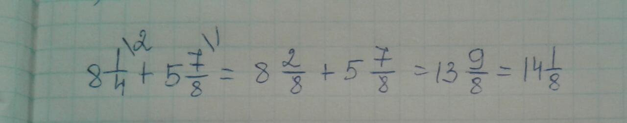 8 1/4 + 5 7/8 = 8 2/8 + 5 7/8 = 14 1/8